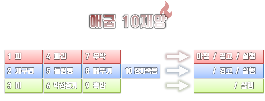 하나님께서는 바로의 마음을 완악하게 하심으로 계속해서 이스라엘 백성을 보내주지 않는다. 10번의 재앙이 내리기 전까지 하나님께서는 바로의 마음을 완악하게 하신다. 10번의 재앙이 애굽에 내릴 때 마다 신기하게 이스라엘 백성이 거주하는 고센 땅에는 피해가 없었다. 애굽사람에게는 재앙이었던 것이 이스라엘 백성에게는 구원이 된다. 이스라엘 백성에게 오히려 구원이 된 애굽 10재앙을 살펴보면 일정한 규칙이 있다. 하나님께서는 하나를 하시더라도 그냥 하시는 일이 없으시다. 그 안에 숨겨진 비밀이 무궁무진하다. 애굽 10재앙에 대한 도식이 있다. 이 표는 간단하게 보여주는 구조이고 좀 더 구체적으로 살펴보면 피라미드식 구조가 나온다. 애굽의 신들을 하나씩 무너뜨리고 점진적으로 피해의 규모가 커진다.