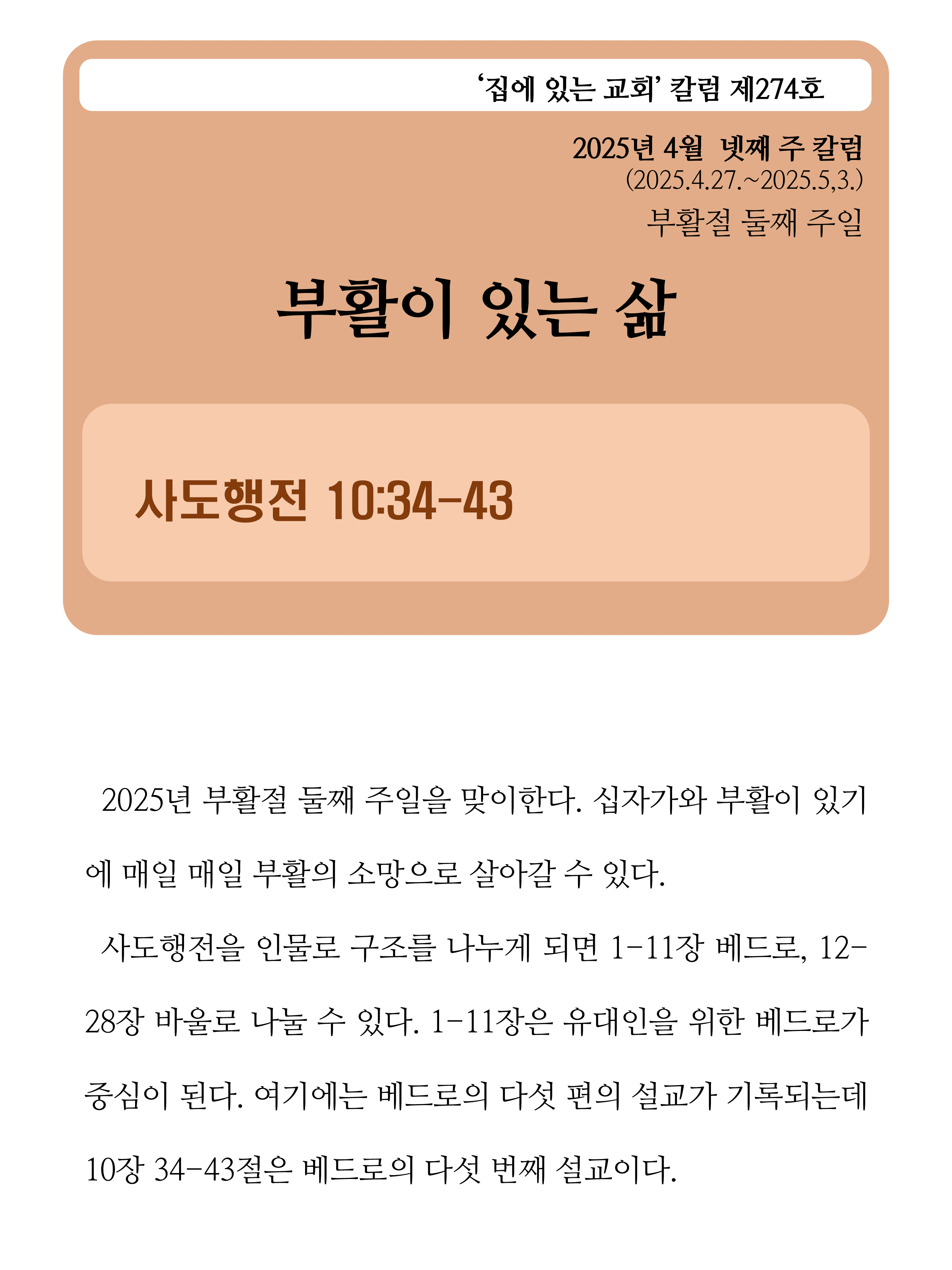 아끈공동체 금요칼럼 부활이 있는 삶 우드누최강파파 2025. 4. 25. 04:20 공유하기 게시글 관리 The Church in the wilderness '아끈공동체 금요칼럼' 카테고리의 다른 글 새 계명 (0) 2025.05.16 어린 아이 (0) 2025.05.03 부활 (0) 2025.04.18 때가 차매 (0) 2025.04.11 세상에서 가장 고상한 지식 (0) 2025.04.04 '아끈공동체 금요칼럼' Related Articles 새 계명 어린 아이 부활 때가 차매