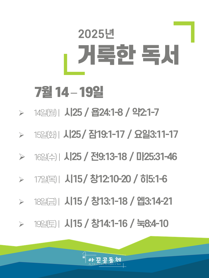 | 2025년 7월 20일 성령강림절 후 여섯째 주일 (0) | 2025.07.20 |